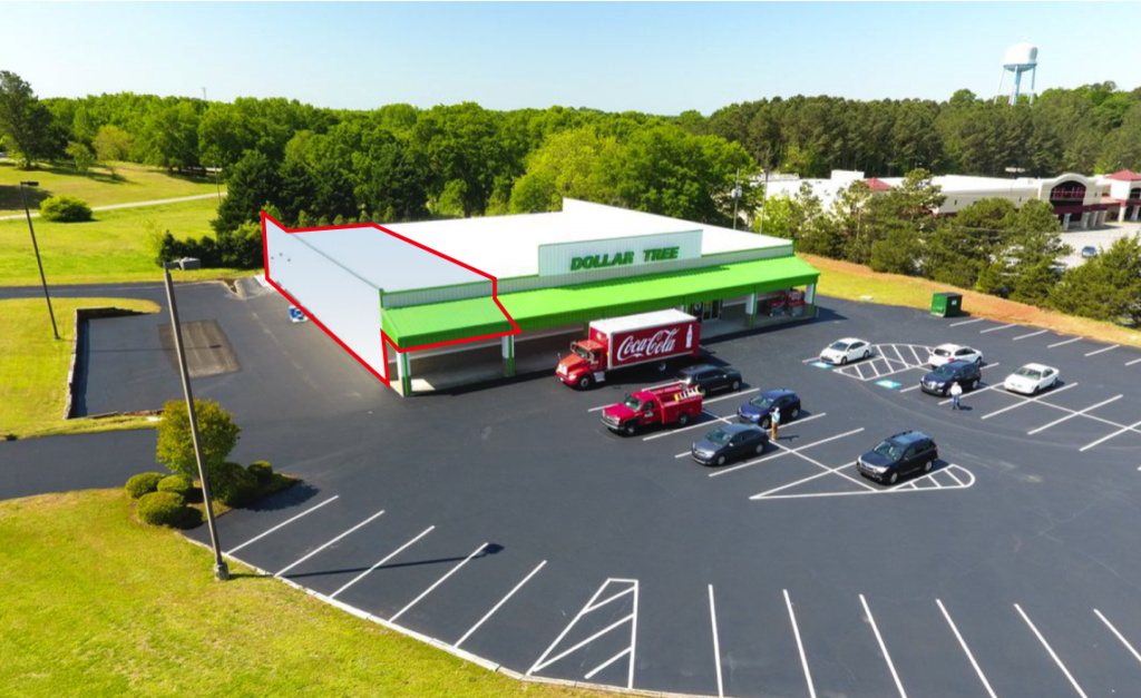 Cold Dark shell space with drive thru attached to Dollar Tree.
